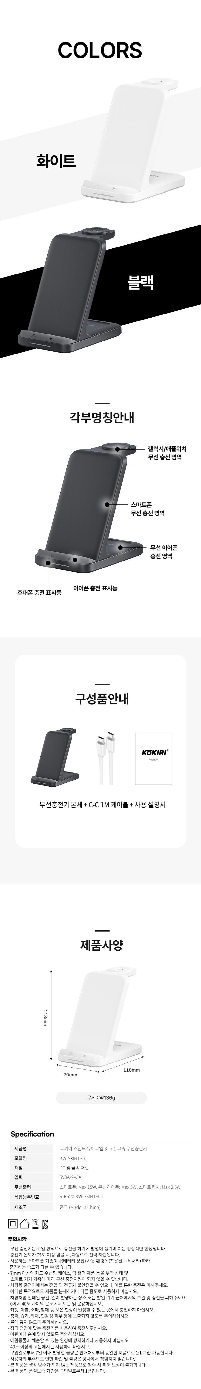 »óǰ¸í ÄÚ³¢¸® KW-S3IN1P01 ½ºÅÄµå µà¾îÄÚÀÏ 3IN1 µ¿½ÃÃæÀü °í¼Ó ¹«¼±ÃæÀü±â(¿öÄ¡Àü±âÁ¾È£È¯)